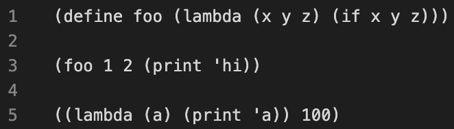 If you would like a quick refresher on Scheme syntax consider looking at the Scheme Specification and Scheme Built-in Procedure Reference (and the Lab 11 Scheme Refresher).